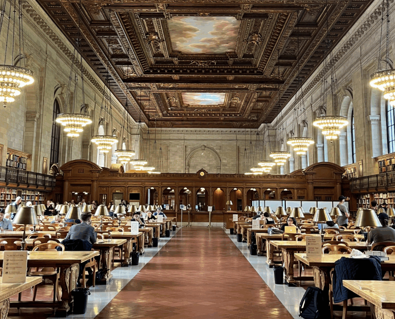 In between two lions lies an entrance to the fifth-largest library in the world.