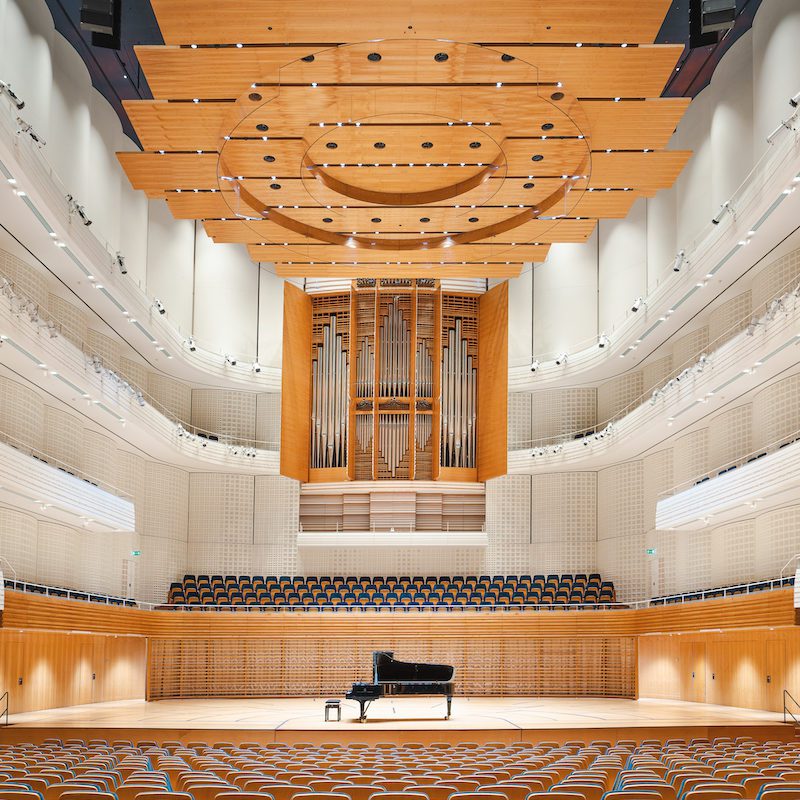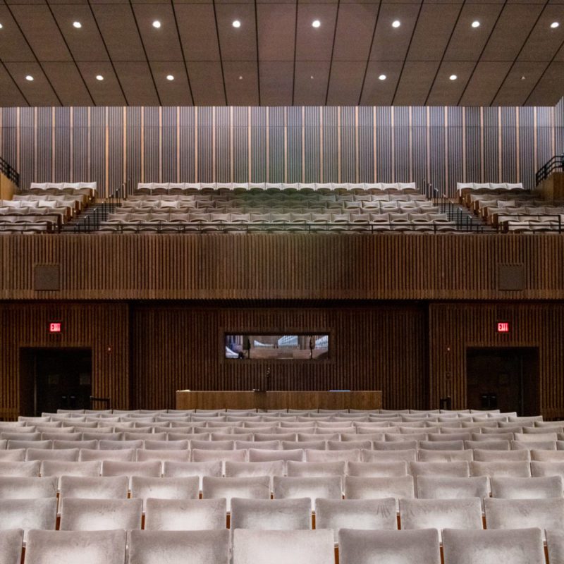 A grand organ's renovated concert space is housed in an unexpected institution.