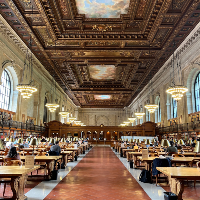 In between two lions lies an entrance to the fifth-largest library in the world.