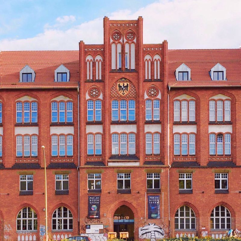 Originally a post office, this neo-Gothic structure's red brick facade and gable design stand in contrast to neighboring buildings on the Landwehr Canal.