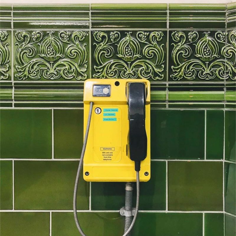 This yellow telephone is found in the Chalk Farm London Underground station - one of three stations designed by English architect Leslie Green.