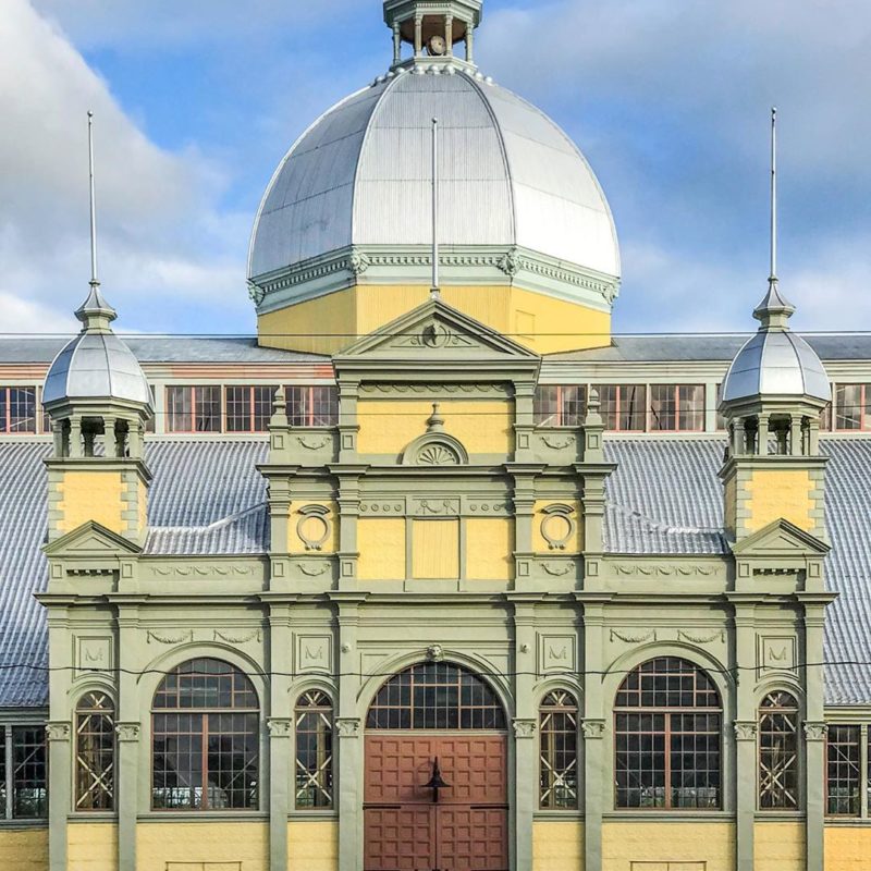 Originally used to host agricultural fairs, this exhibition hall earned the nickname the "Cattle Castle".