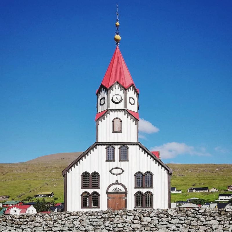 Known for its distinctive red roof, this church on the Faroe Islands is home to a rune-stone that tells the story of Sandavágur's first Viking settler.