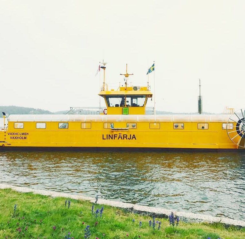 This electrically-powered passenger cable ferry in the Swedish archipelago takes passengers to the historic Vaxholm Castle.