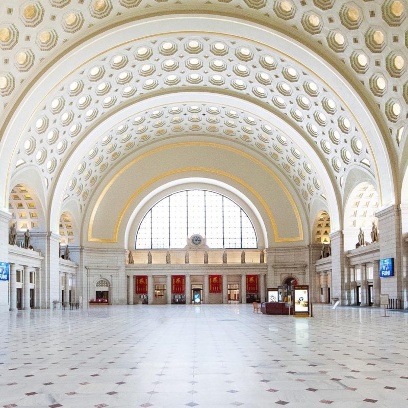 AWA visted hereThe 96-foot high Main Hall coffered ceiling is an example of an interior indebted to Burnham’s signature neoclassical design as its gold leaf trim reflects the natural light entering from the large Diocletian windows.