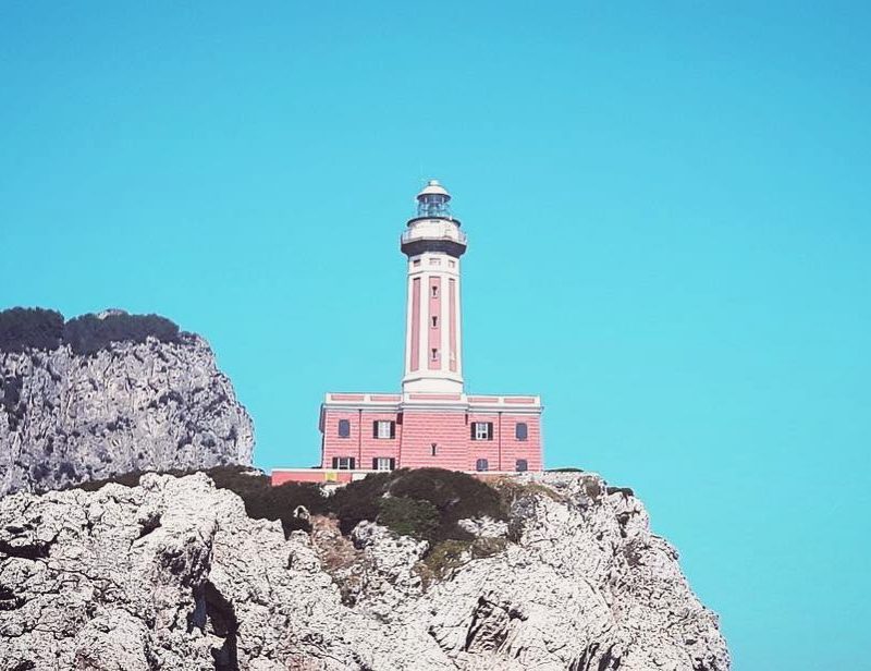 Active since 1867, this lighthouse on a rocky cliff on the Island of Capri, has a rotating signal that emits white light flashes every 3 seconds across 25 nautical miles.
