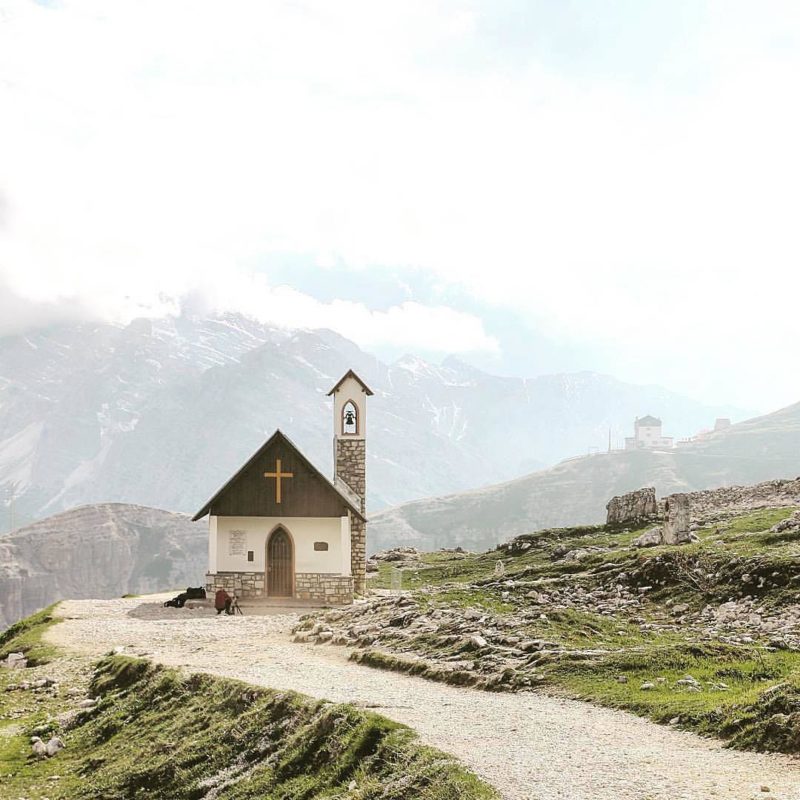 This small chapel in the Alps marks the starting point for a moderate-level hike through rocky terrain, dense forests, and an old World War II tunnel.