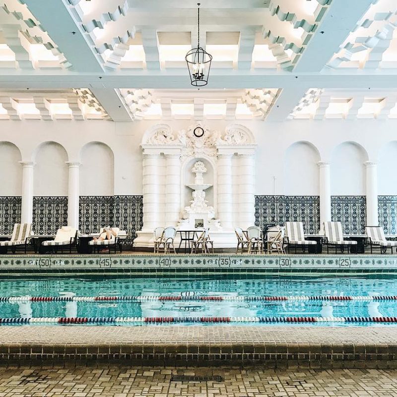 This hotel has one of the oldest and largest pools in the United States, showcasing classic architecture from the 1920s.