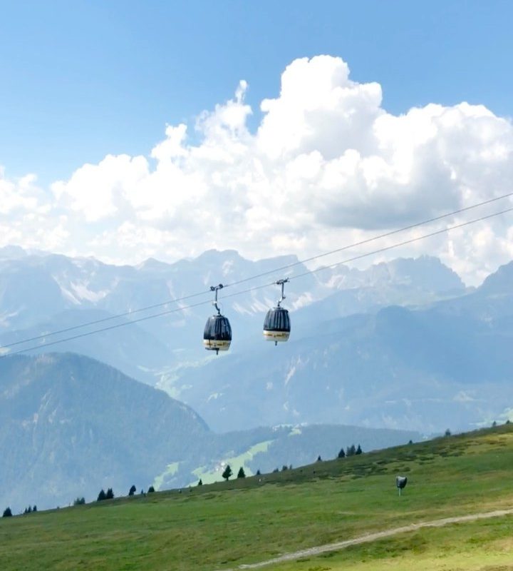 Located in the Dolomites, the Ruis Cable Car transports passengers up to the Kronplatz mountain peak.