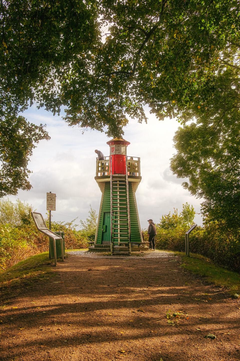 The observation deck can be reached via an iron, 19-step, staircase and the red riveted steel lantern house contains a belt lens with two incandescent lamps.