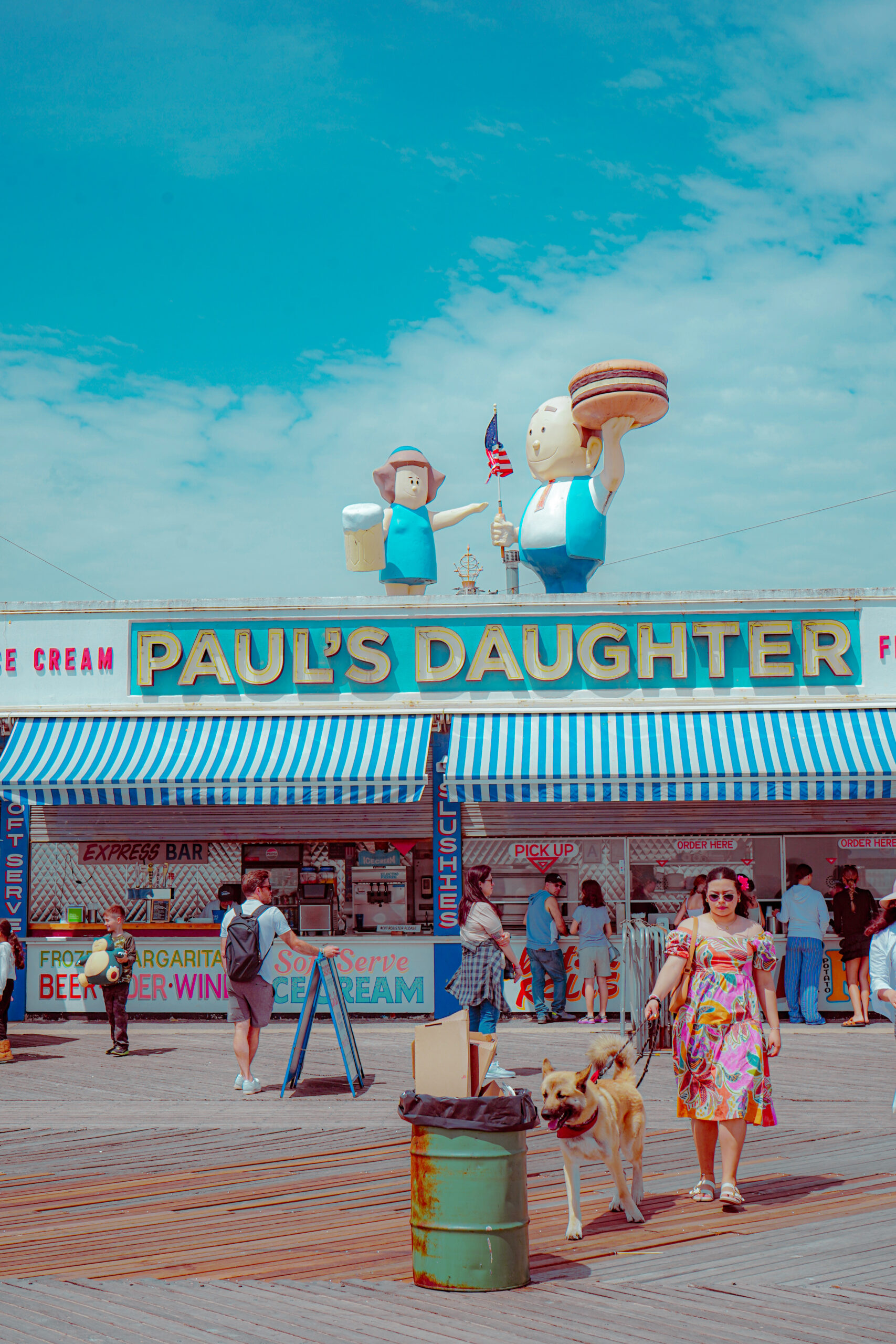 Coney Island has a 61-foot-tall lighthouse; however, if I was sailing nearby, what would attract me to dock there would instead be the larger-than-life rooftop statues of a man holding a hamburger and a girl holding a soda. No shade to lighthouses, but a 200 pounder burger and an XXXXL soda would certainly brighten my day! The statues stand atop Paul’s Daughter, an iconic Coney Island institution that’s graced the boardwalk for over six decades, making it one of the oldest continually operating businesses on Coney Island.