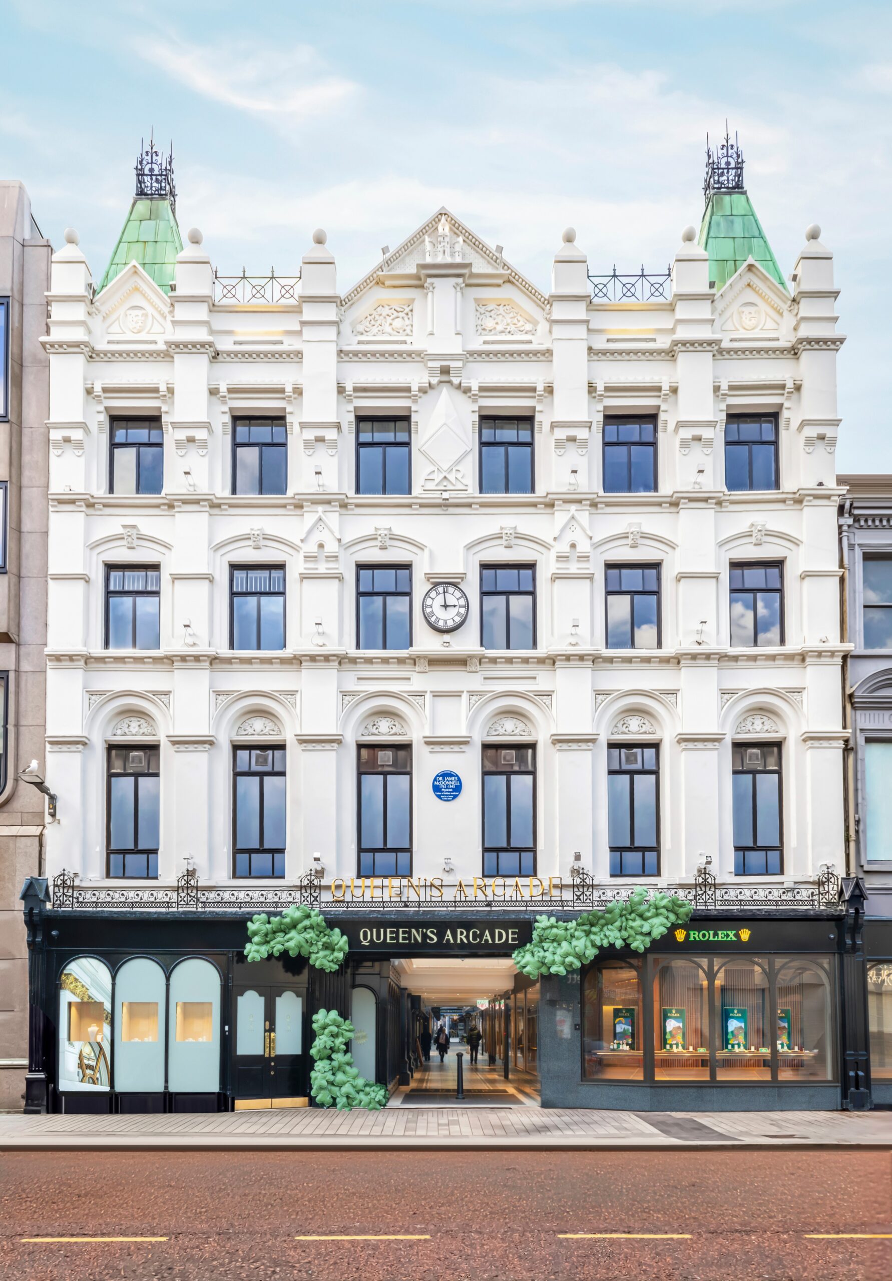 After McDonnell’s death, the property changed hands and was transformed into the arcade. A miniature turreted castle sits atop the building, possibly nodding to the original Belfast Castle that once stood across the street- though the real monument to McDonnell’s legacy stands a few blocks away, where the Royal Victoria still saves lives.
