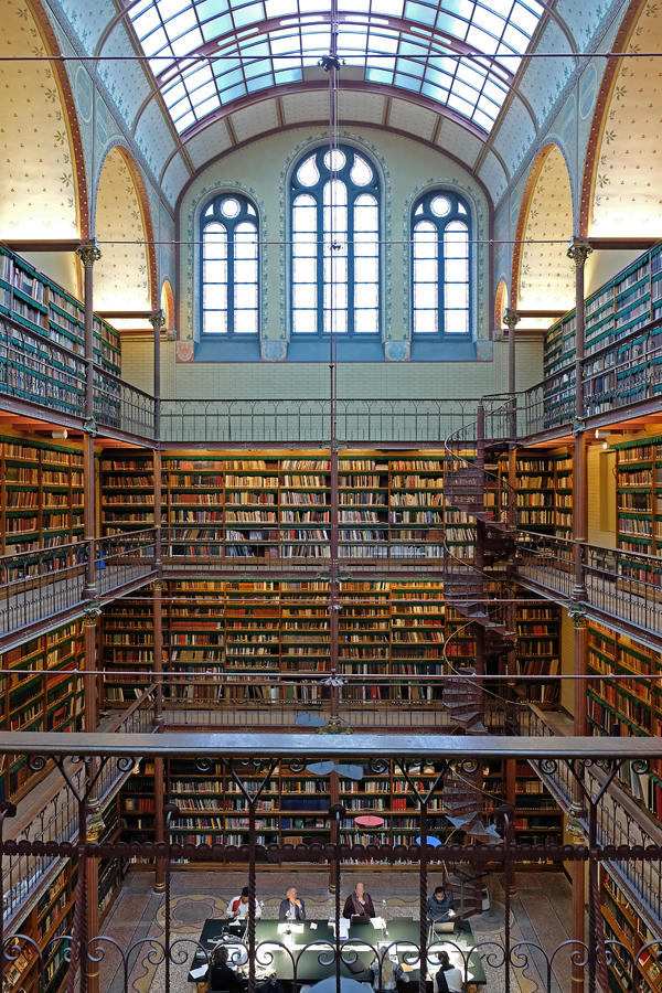 Designed by Pierre Cuypers and first opened in 1885, the Research Library was constructed in Renaissance and Gothic architectural styles. From shelf to staircase, the Library is adorned in decorative details that still make their presence known in such features as the iron railings and staircase.