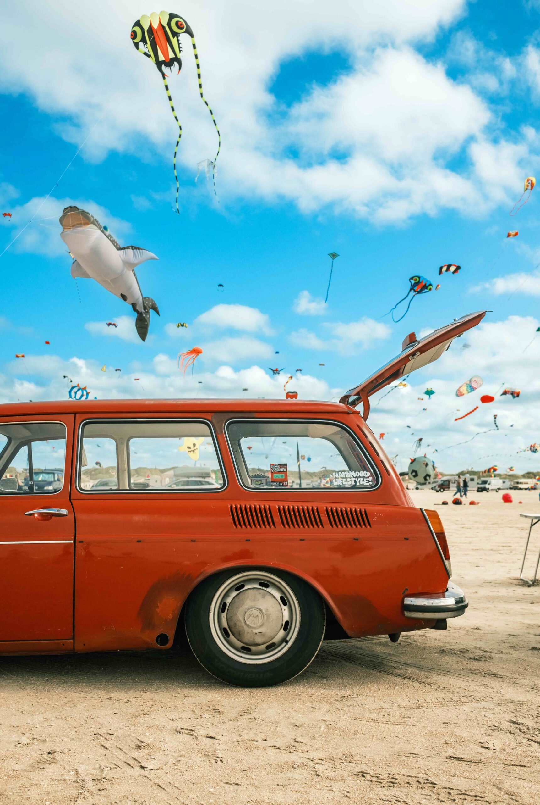 If you’re on Lakolk in the fall, you’ll be enjoying yourself with thousands of other highflyers on one of Europe’s widest sand beaches. Children can happily splash around in the shallow lakes left by the outgoing sea while you focus on grown-up responsibilities, like letting your shark kite roar and soar.