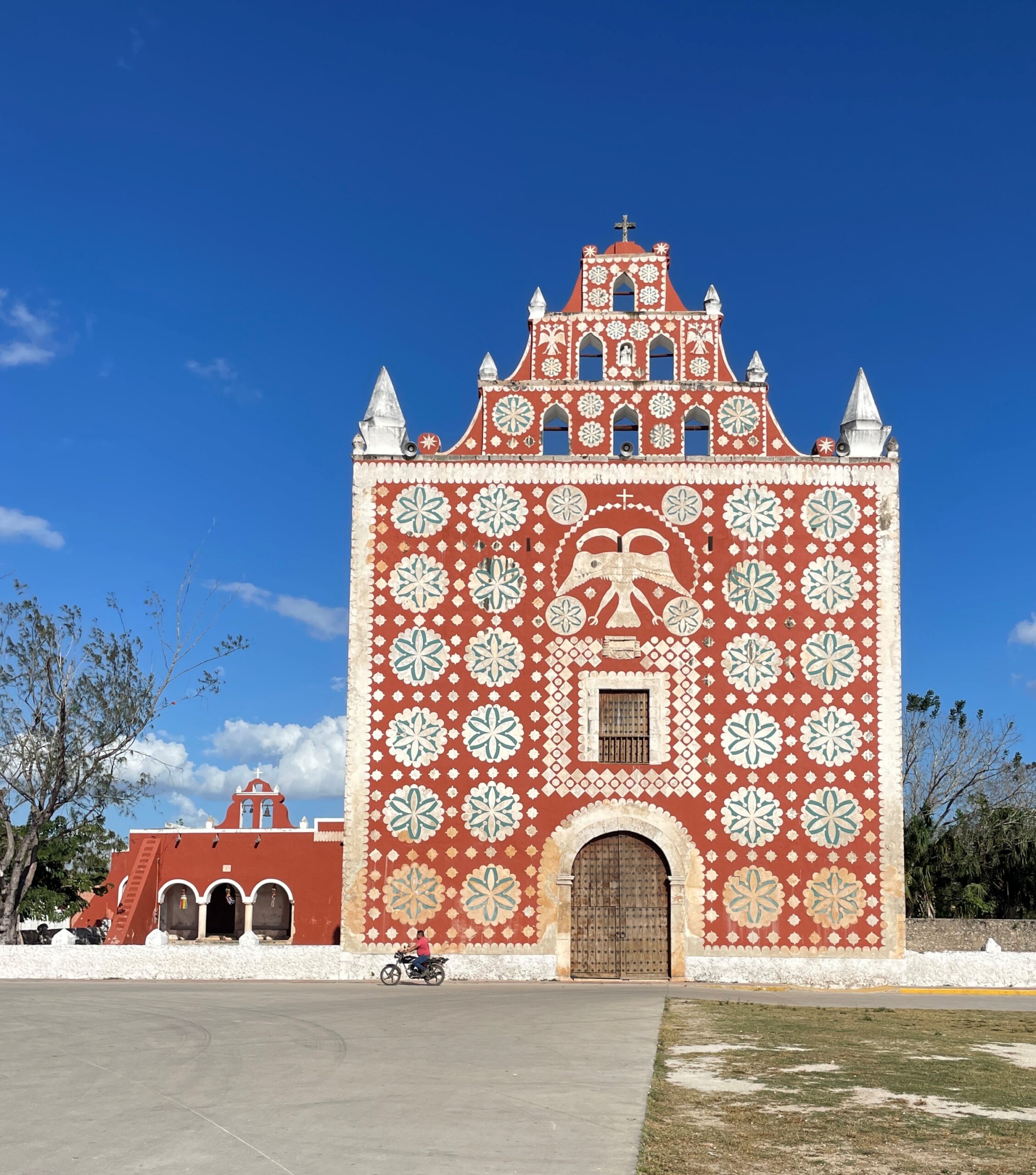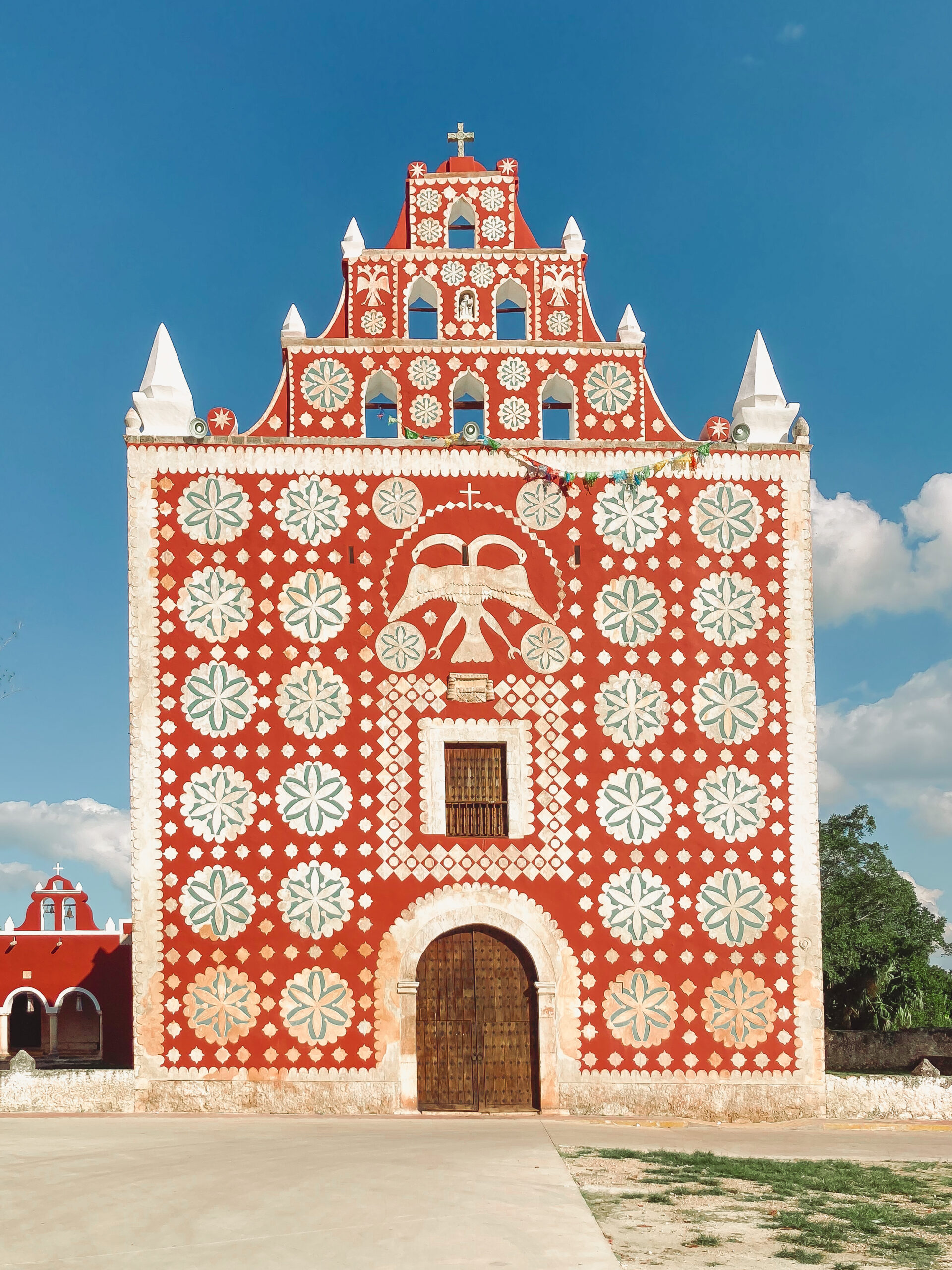When Spanish Franciscans completed this church in 1646, they faced an unexpected problem: the Maya villagers refused to enter. In traditional Maya religion, only priests could enter sacred temples- commoners who crossed the threshold faced death. It took Catholic priests over a century to convince locals they wouldn’t be killed for stepping inside. The double-headed eagle above the door tells this story of collision: officially Habsburg Spain, but perhaps also a nod to Maya eagle symbolism, where dual heads represent contemplation between good and evil.