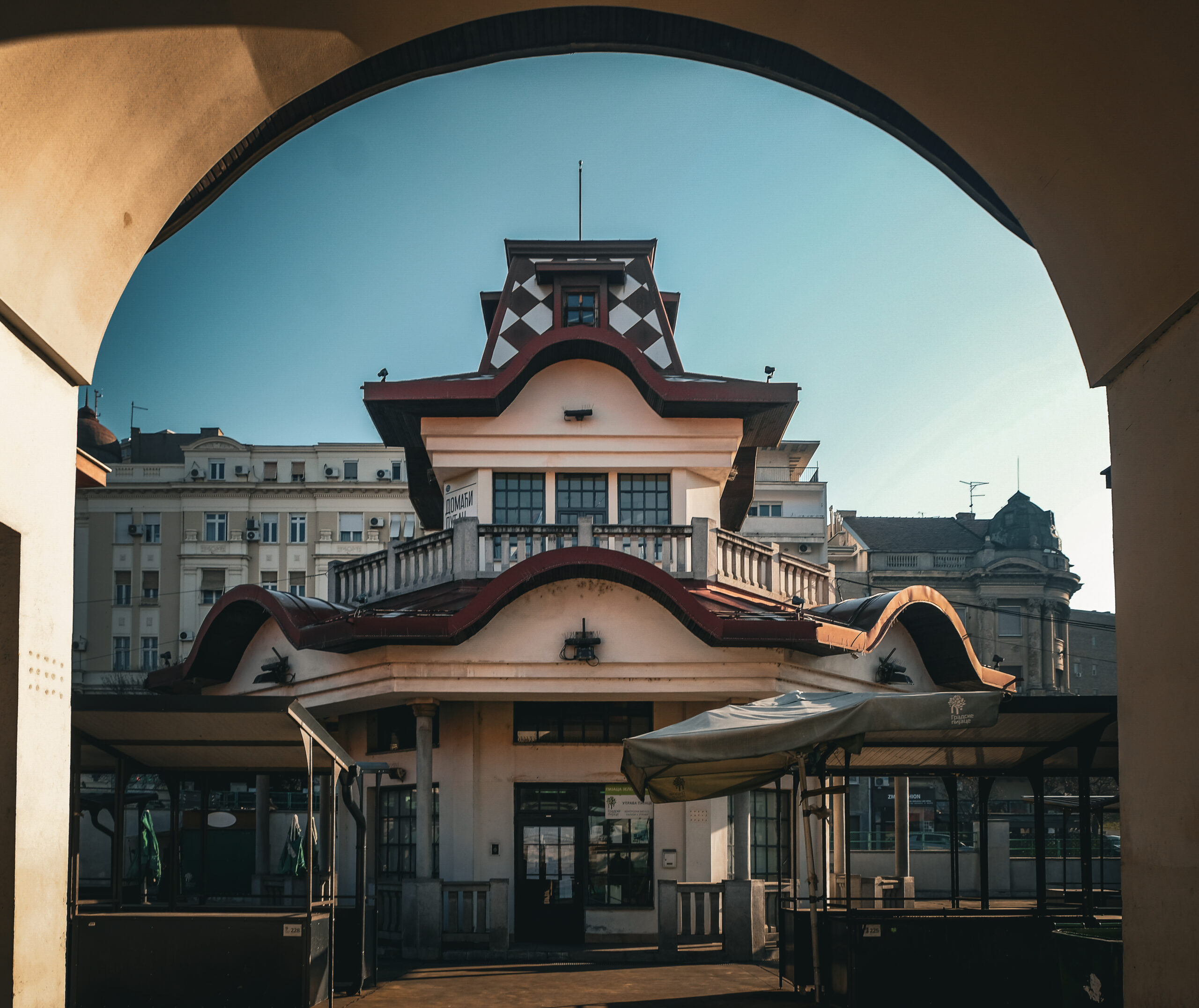 When Belgrade officials opened Zeleni Venac in 1926, their primary goal was pragmatic: evict farmers illegally hawking produce from ox-wagons in the city’s downtown Terazije. But the new market, equipped with running water, sewage, brick-walled shops, and gauged weighing scales, was so thoroughly modern that dazzled residents crowned it the “Queen of the markets,” a title it holds nearly a century later. Today, this state-protected monument remains one of the Balkans’ most advanced green markets, its distinctive red-and-white architecture standing where an 18th-century fortress trench once ran.