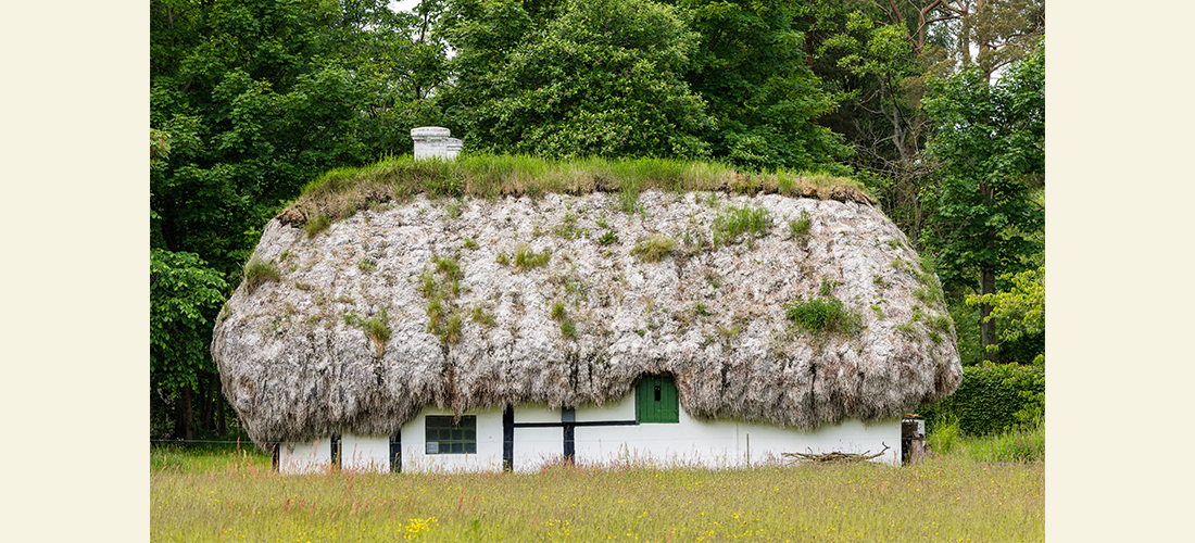 On the Danish island of Læsø, the houses seem to wear the sea itself. Their roofs are thick, heavy cascades of eelgrass, a type of seaweed, layered so densely they ripple down the sides like waves that brought them ashore in the first place. Centuries ago, when salt-making had stripped the island of trees, there was little wood left for building. The islanders turned instead to the ocean, gathering the long strands of seaweed and weaving them into roofs so enduring that some have lasted hundreds of years. Over time, they grew shaggy and mossy, with wildflowers sprouting from their tops, as if the houses were alive!