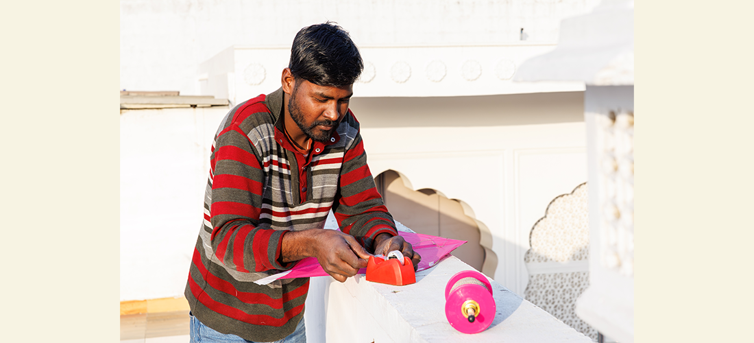 Kite flying has been popular among Indian royalty since the Mughal period in the 17th century, but Maharaja Sawai Ram Singh II is credited with turning Jaipur into a kite-fighting capital. Locally known as patangbazi, the goal is simple: fly your kite high, cut your opponent’s line with yours and claim their fallen kite as a trophy. The technique requires dexterity, quick reflexes, and tactical prowess – many getting their kites high into the air even without a breeze by pulling and tugging in the right direction at the right time. Flyers sway and swerve, angling for the perfect cut. When a kite falls, neighborhood kids scramble across rooftops to claim the prize. What began as a noble pastime is now woven into the fabric of daily life in Jaipur – spirited, colorful, and competitive.