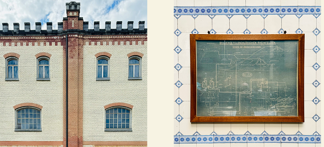 In the Swiss-German border town of Rheinfelden, overlooking the urban area nestled on the Rhine river is an unusual castle–with smoke stacks. Designed in a whimsical Gothic style, this “fortress” protects hops instead of a populace. Home to the largest brewery in Switzerland, one would never know that melting ice almost ruined the company right at its start.