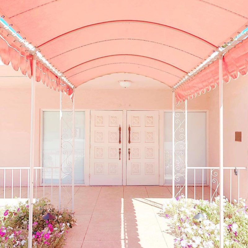 A pastel pink dream, this clubhouse in Palm Springs, California owes everything to its biggest benefactor, Pearl McManus.