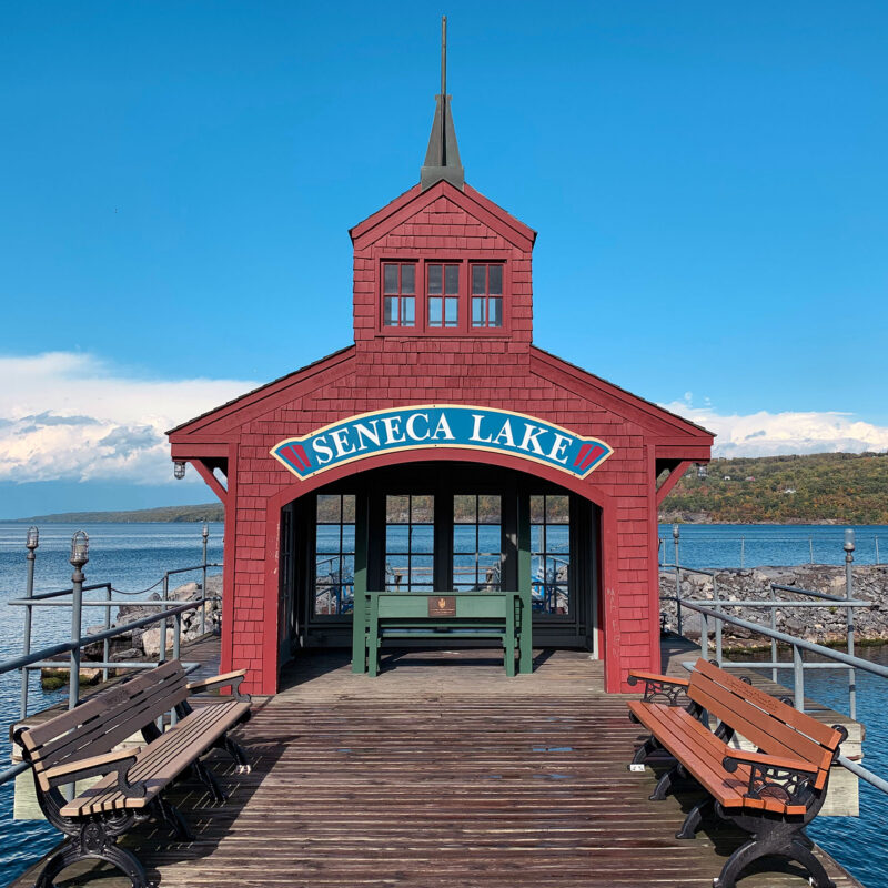 From the CommunityThis pier rests on the southern tip of Seneca Lake, one of New York's "Finger Lakes", and is surrounded by a region of sweet wine vineyards.